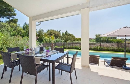 This modern holiday home, built in 2014, is situated in a quiet setting. It is located outside of the town centre of Alcudia, near the coast. It is ideal for families with children.