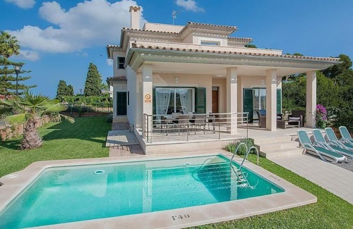 The detached villa, built in the year 2013, is located in a residential neighbourhood outside of the town centre of Alcudia, near the coast. The house can accommodate up to ten people on 220 m², spread over two floors. It is ideal for families with children.