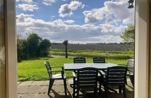 The property has its own car park with enough space for two cars. The terrace is not visible from outside due to the greenery. The view is of the Frisian fields.