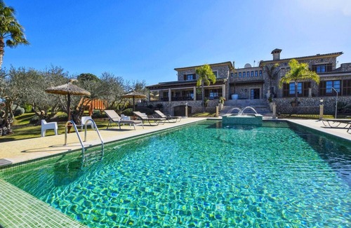 The magnificent Villa is located on a beautiful 14,000 m² property planted with olive trees and palm trees near the village of Ariany. The elevated location offers a spectacular panoramic view over Es Pla and the Tramuntana mountains