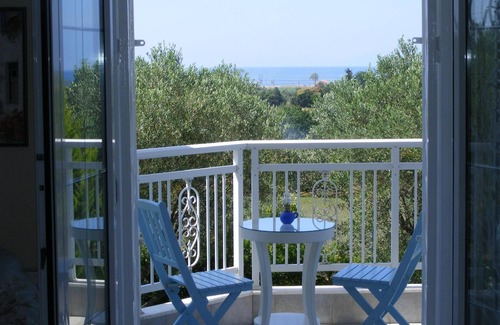 The beach is about 700-800 metres away. It is ten minutes to a bus stop. It is not absolutely essential to hire a car, but it is recommended. The famous holiday town of Chalkidiki is about 30 minutes away by car. Places of interest nearby are the historical town of Thessaloniki (old town, Agora, White Tower) and in the Chalkidiki area the Petralona cave and Afytos. You can combine visiting sights and swimming in the sea on your holiday. The town of Thessaloniki is also accessible on a lovely boat trip. There is a water park for entertainment in the area and there is a well-known shopping centre.