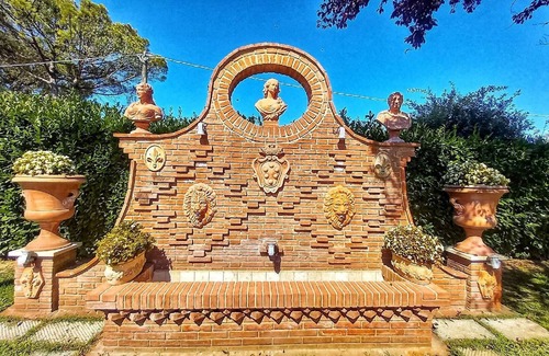 This fabulous villa in the province of Arezzo invites guests to relax and unwind in the nature of the Tuscan countryside, characterised by green hills, golden sunshine, sublime wine and unique cuisine. Guests can request transfers to and from the airport, guided tours, meals, cooking classes and other activities, such as fishing, golf, horse riding, mountain biking and much more. The villa was built in 1921, and has undergone some renovations and extensions over the years in order to offer all modern comforts. Just outside the villa is the beautiful swimming pool surrounded by classic Italian gardens and sculptures. There are also two barbecue spots, a 6-seater Jacuzzi and an 8-seater Finnish sauna next to the pool that can be enjoyed by guests exclusively throughout the year. There are also numerous gazebos and sun loungers. There is also a large octagonal fountain and another gazebo with table and chairs. The property also offers a table tennis table, table football or table football, fitness equipment, 7 mountain bikes for adults and 4 mountain bikes for children to be used freely by guests, and a children's playground area. The villa is divided into two large three-bedroom flats with a 26-centimetre vertical solid brick partition wall. One of them is occupied by the owner, who has his own driveway gate and independent door to ensure maximum privacy for guests, who have exclusive use of the entire garden, swimming pool, sauna and whirlpool bath.