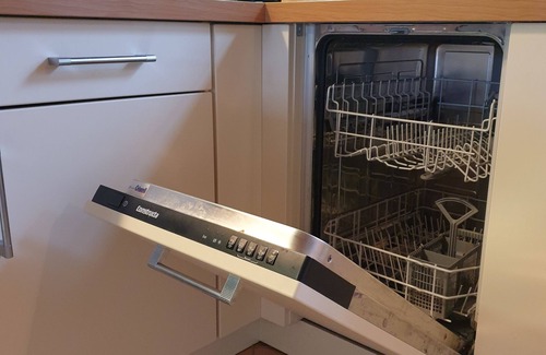 The adjoining living area to the garden and the water is light and bright through the 4 patio doors (1 with fly protection). 2 couches invite you to relax, an audio system and a large flat screen TV (cable) with DVD are available. A stove provides emotional hours and is "warmly" recommended. Wonderful evenings on the terrace, whether in the beach chair or on the garden chairs, are always to be preferred - especially at dusk with sunset.