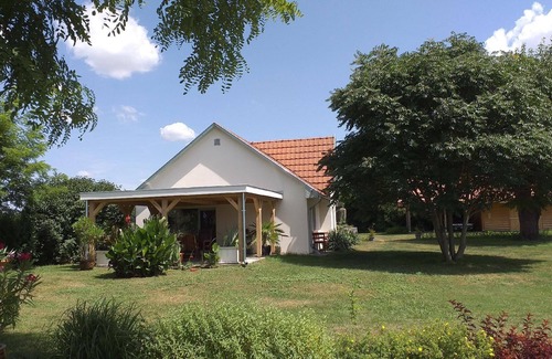 The house measures 90m² and is in the midst of the puszta, surrounded by meadows and forests. All the rooms are on the ground floor. You are welcomed by a hallway under a pointed roof, followed by two bedrooms, a bathroom, a kitchen and a living room. The living room measures 22m² and is light, with a wood-burning stove, a two-seater sofa, two armchairs and satellite TV. From here you can enjoy a beautiful view of the puszta. The kitchen features natural colour tones and is fully-equipped with a dishwasher, gas stove, microwave and coffee machine etc. You can sit at the table for four people. The first of the two bedrooms is furnished with a double bed (160 x 200cm), the second with two single beds (90 x 200cm) that can also be joined together. It is also possible to add another bed. The bathroom is fitted with a shower, two washbasins and a toilet. Free wireless Internet access is available.