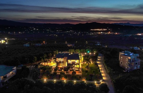 Escape to a fully detached luxury holiday villa with a private swimming pool and separate children's pool, nestled in the heart of a serene olive grove just 5 km from Chania city center. This spacious and luminous villa offers absolute relaxation, privacy, and breathtaking panoramic views of the sea, mountains, and city of Chania.