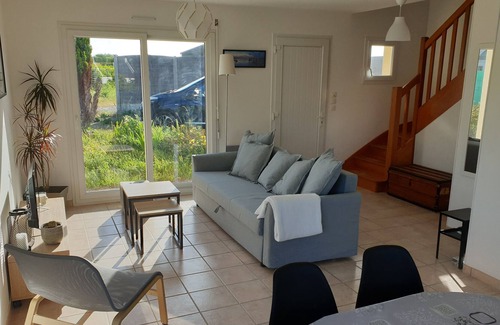 Quiet house for 6/7 people, fully equipped, located in Lampaul-Plouarzel 850 m from the sea and white sand beaches. It has 3 rooms with 4 beds (room 1: 1 double bed + 1 single bed, room 2: 1 double bed, room 3: 1 double bed) and 1 bathroom and a garden of 800 m². It is close to the center of the village (500m) and amenities (bakery, supermarket, pharmacy, doctor, hairdresser and market Thursday ...)