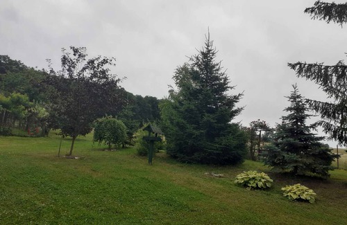 The holiday home is located on the edge of a small village, under a forest.