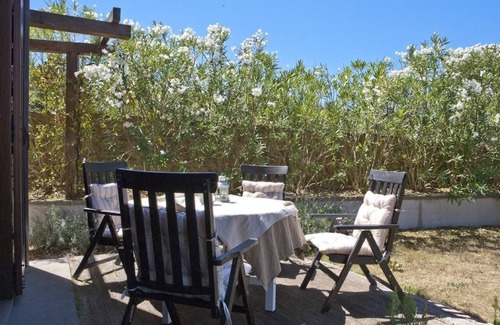 The villa consists of a master bedroom with a king size bed, a second bedroom with a queen size bed, and the last bedroom with two single beds, three bathrooms with a shower and an open concept kitchen living room. The apartment has exterior shutter insulation that ensures privacy and provide shade during the sunny hours.
