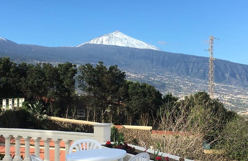 From the large terrace you enter on the lawn directly to our swimming pool with sun loungers. Morning you can enjoy breakfast overlooking the entire Orotava Valley, Mount Teide and the Atlantic Ocean at the swimming pool.