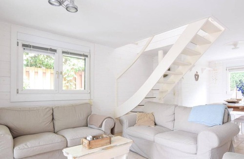 This holiday home is located in a quiet, private neighborhood at the bottom of the dunes. There is parking at the house. There is also a storage room for storing bicycles, for example. The forest and beach are within walking distance.