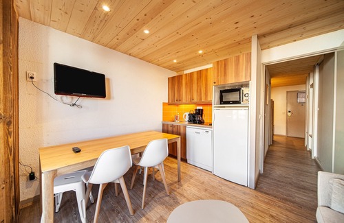 It is a modern 40m² apartment located in Huez which has 2 bedrooms and can accommodate up to 5 people. The apartment, located on the 4th floor and equipped with a lift, has a balcony and access to the heated community pool, open, as well as access to the sauna and a paid access to the spa. Within the apartment, you will benefit from internet access, a hairdryer and two televisions (including one in the bedroom). As for the kitchen, it is equipped with ceramic hobs, a refrigerator, a freezer, a microwave, a dishwasher, a Nespresso coffee machine, a toaster and a kettle. A washing machine and tumble dryer are accessible in the residence.