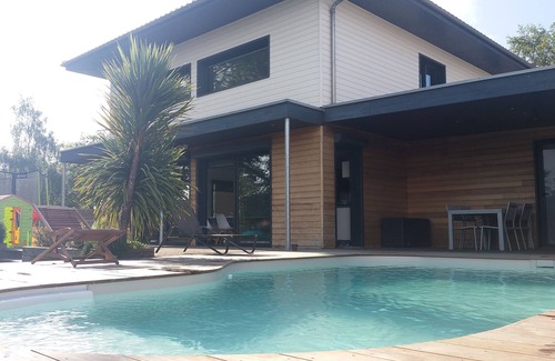 quiet family neighborhood in a charming little town with nearby shops (bakery, leclerc, pharmacy, butcher, ...). Ideal house for a family with children or between friends with children. 10 minutes from Landes beaches, 1 hour from Spain. Heated pool, children's area with outdoor hut, trampoline and children's rooms.