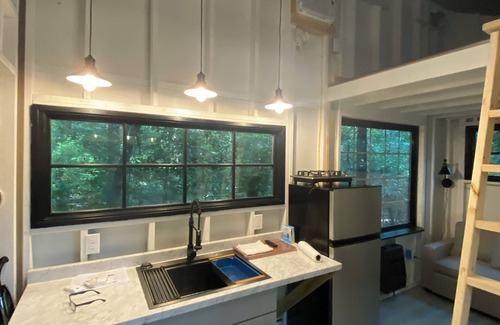 Located in Anderson, this enchanting 1-bedroom Treehouse offers a cozy retreat near a creek for guests. With a queen bed in the loft and a sofa bed in the living room there's plenty of space to relax. Enjoy the private setting nestled in the Holly trees in acres of woods with heating and AC, as well as the convenience of a hair dryer in the bathroom. Pool is not included in treehouse rental price.