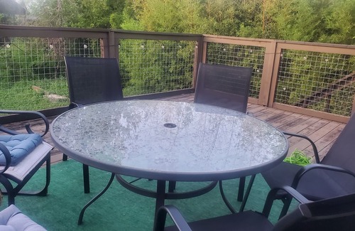 Our home is a 2 bed/2.5 bath fits up to 5 people max. Usually 5th guests sleeps in living room. The home is 100 years old. Imperfect, quirky, unique, cozy and has a deck!
