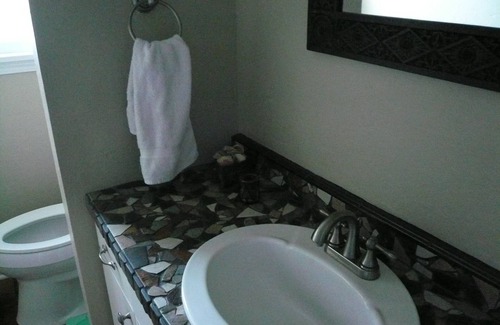 Four bedrooms, 2 1/2 bathroom home for rent in Green Spring located conveniently to interstates. Hardwood flooring. King sized bed in master bedroom with a travertine, multi head shower on suite. Large guest bedroom with queen sized bed. Another guest room with a full sized bed. Bring your baby and enjoy an equipped baby's room. Several HD TV's with Directv. Large deck with propane grill and built in benches. Fully equipped kitchen. Our home is your home. enjoy the beautiful yard and amenities in the east end.