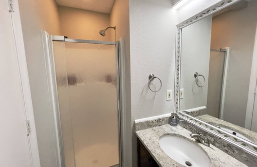 There's a wifi TV on each of the bedrooms. The Master bedroom has it's own bathroom. Please note this has been listed as a half bathroom but has a sink, toilet and shower. There's also an additional standard size bathroom to share.