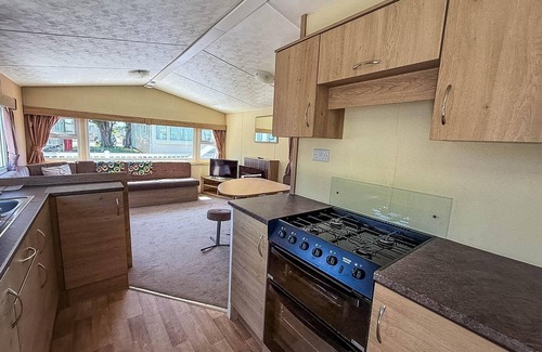 3 bed caravan, sleeps 8. With wrap-around decking, double glazing and central heating. Ruby rated.