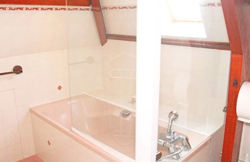 The house has a comfortable bedroom with a double bed. The bathroom is fitted with a bathtub and a toilet. A separate toilet is available