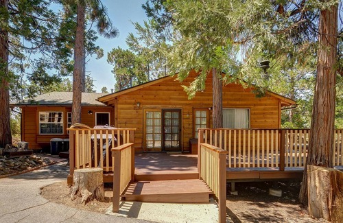 Smell the pine trees while relaxing on the beautifully shaded wood deck wrapped around this dog-friendly Idyllwild home.