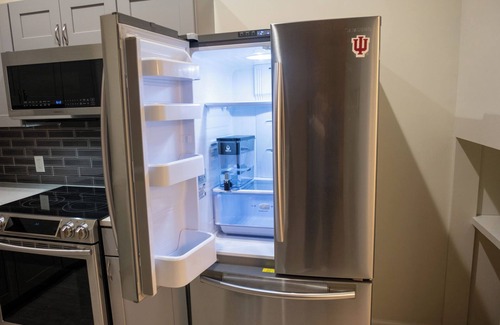 Welcome to Bloom! The Hoosier Suite invites you to stay away in downtown Bloomington, IN. Our suite has all modern appliances and finishes, tray ceiling lighting, and cream & crimson stripes to dazzle your eyes.
