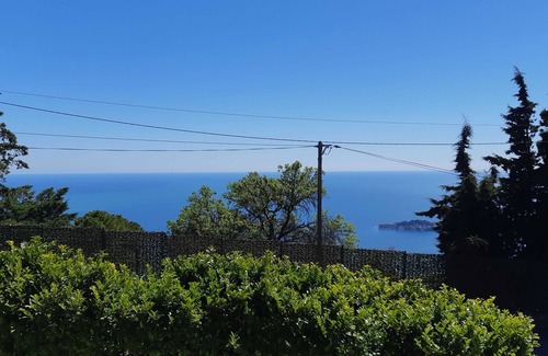 Gîte on the 1st level of the house including a second gîte (n°6344) on the ground floor. Entrance, living room, living-dining room opening onto a private terrace with sea view. Fully equipped open kitchen. Bedroom with 1 bed for 2 people (160x190). Bedroom with 2 single beds (90x190). Bathroom with a walk-in shower. Separate WC. Private terrace. Parking in the property with 1500 m² of common land. Gîte near the Grande Corniche road (busy road during rush hour). Including charges. Tourist tax extra. Stay on the Grande Corniche road overlooking the iconic French Riviera. This garden-level gîte in a typical Nice house is located in Eze, a few kilometers from its legendary hilltop village, near St-Jean Cap Ferrat, between La Turbie and Nice... 10 minutes from the beaches, Nice, and the Principality of Monaco. The 1500m² property includes four gîtes: 6340, 6341, 6343, and 6344.