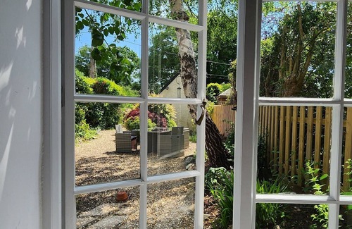 The cottage has its own garden area with outdoor seating and established trees and plants, making it a great outdoor sanctuary.