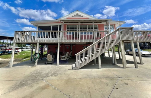 The master bedroom has one queen bed with a full bath. The second Bedroom has a queen bed. The third bedroom has two twin beds- both bedrooms share a full hall bathroom. Full laundry room with washer and dryer. Large smart TV in living room with Dish Network. Fully stocked kitchen please help yourself to the pantry if needed. Enjoy some outside dining with your family and friends using the Blackstone and large pellet grill. Enjoy your coffee while watching the boat leave for the day on the screened in porch or the large wrap around deck.