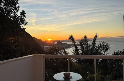 Aqui você vai acordar com o som dos pássaros, sentir a brisa do mar na varanda e assistir ao pôr do sol com uma das vistas mais bonitas do Rio. A casa é confortável, decorada com carinho, tem quartos espaçosos, velas aromáticas feitas à mão e um clima acolhedor que mistura o rústico com o charme carioca.