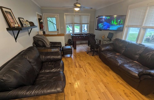 Hot tub on the second story deck, BBQ station on the lower deck and a QED Uneekor golf simulator is also on the property that can be rented for $25 per hour. A block away from Little Lake and Rogers Cove, walking distance to downtown, 2 blocks away from the new Canadian Canoe museum and Beavermead Provincial Park. A 2 minute drive to the 115 highway. There is a basement apartment but is not attached to the rental place.