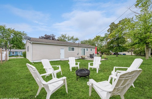 Come and relax in the hot tub!! The home has an open concept living area and eat in kitchen to visit with friends and family after a long day at the beach or shopping. There are 2 spacious bedrooms with queens size beds and 1 bedroom with a full size bunk bed. There are laundry facilities in the basement. You can also enjoy grilling on the back patio or talking and laughing by the fire. Whether it's relaxing on the beach or fishing, Lake Michigan is just a hop, skip and a jump.