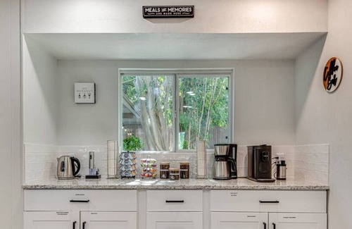 No need to visit Starbucks when you stay with us! Indulge in the fully stocked Coffee Bar – a favorite highlight of guests. With offerings including a traditional brewer, Instant Pot dual Nespresso 3-in-1 coffee maker, tea pot and a coffee grinder. We offer two types of Starbucks coffee beans, so your caffeine cravings are met. We also stock the coffee bar with plenty of Nespresso Pods, K-Cups, a selection of creamers and tea, hot chocolate and a variety of creamers.