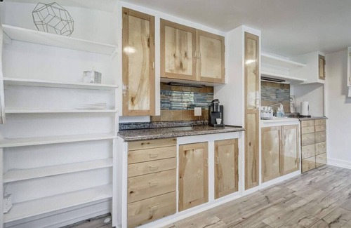 This is a one level, one bedroom + one bath home. We have a queen-sized bed and a pull out couch that can sleep two smaller people. Like many older downtown homes, this home is on the smaller side, but still a perfect place to call home for a few days while you adventure. The fenced in backyard is equipped with a patio and hot tub!