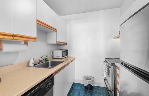 Stay in the centre of the action in this one-of-a-kind place & more.. Full kitchen, Queen size bed, full bath, balcony, mini fridge and Keurig coffee machine with coffee pods; complete linens, towels and toiletries shampoo, conditioner and soap. Enjoy getting around as you are in the heart of town, minutes from Ski, waterpark, shopping and our very own AU Charbon Apportez Votre Vin restaurant steak house & pizzeria