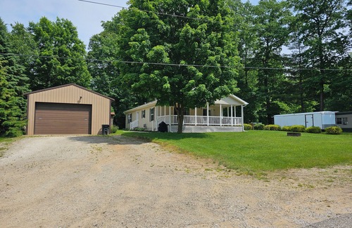 Adorable 3 bedroom, 2 full bathroom home with large living room and dining area. Amenities include washer/dryer, large kitchen with island, pots/pans, dishes, cups, silverware, full size refrigerator with separate freezer, dishwasher, stove/dual oven, microwave, toaster, coffee pot, kitchen table with 4 chairs, central air, heat, smart t.v., DVD player and WIFI. Two double glass doors with access to a lighted, covered porch overlooking the fire. Charcoal grill is also provided.