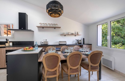 In Loire Atlantique south of Saint-Nazaire, cross the largest bridge in France to discover the Jade Coast and the history of seaside resorts in the Nantes region, the traditional land of Gilles de Retz. Between Saint-Brévin, Saint-Michel-Chef-Chef and Pornic, with family or friends, drop your bags in this hamlet twinned with Pornic, renowned for its succession of small blonde sandy coves, Sainte Marie benefits from being both peaceful while remaining close to the village and beaches.This 90 m² single-storey house and its enclosed wooded garden of 900m² are ideally located to enjoy all the activities of the surrounding seaside resorts. Only 300m from the first beaches between sea and countryside, it has 3 bedrooms and can accommodate up to 8 people (including one child)The living-dining room has a television, a WIFI internet connection (fibre network) and a fireplace with wood available. The open kitchen is equipped with all the necessary household appliances to make you feel at home; electric hob, oven, microwave, fridge-freezer, capsule coffee machine, filter coffee machine, toaster, citrus press, blender, kettle, oil-free fryer and all the necessary kitchen equipment. The night area consists of a master suite (180 bed) with private bathroom, WC and laundry room, a double bedroom (160 bed) and a dormitory room with a single bed (90 bed) and on the mezzanine (low ceiling height) a double bed (140 bed) and a single bed (80 bed). An independent bathroom with WC completes the rental.For maximum comfort, a desk with a large screen and Apple keyboard, a washing machine, a hair dryer, ironing board and iron, a fan, childcare equipment (high chair and Baby Björn bed), a barbecue, ping pong table and outdoor furniture (tables, chairs and lounger) are provided.Up to three vehicles can be parked in the enclosed and secure parking area of the rental.*cameras in living room and outdoor cameras switched off throughout the entire duration of the stay.Located on the Sainte Marie circuit in the Porteau district and;- 300 m from the "Porteau Beach" and its creeks- 1.7 km from shops, bars and restaurants, cinema, bakery, convenience store, markets...)- 3 km from restaurants and commercial areas (Supermarkets, fitness center, organic shops, escape game)- 3.5 km from the naturist beach of La Raitrie- 3.8 km from the historic centre of Pornic, its Castle, its port, its restaurants, craftsmen and shops, "SNCF Station", Casino and in summer shuttles to Noirmoutier- 4 km from the Golf and tennis courts of the "Bluegreen Pornic Golf"- 5 km from "La Plaine sur Mer" and its "Shellfish Area"- 6 km from "Pornic Adventure" - treetop adventure park- 7 km from "Alliance Pornic Resort Thalasso & Spa"- 8 km from the "Regional Park of the Pointe de St Gildas" and its semaphore- 11 km from the Centre of "Tharon-Plage", "L'Atelier St Michel Chef Chef et Café" and "Racing Kart Jade"- 20 km from "Saint Brévin les pins", its beaches and its pine trees- 25 km from the "Saint-Nazaire Bridge" and the largest quad circuit in the region "Saint Brévin Quad"- 50 km from "Nantes Airport"This accommodation benefits from a concierge service with a team available throughout the stay for personalized services.From the town of Sainte Marie, reach the Porteau creek and take the customs officers' path that runs along the ocean to Montbeau beach. Join the Marina via the Ocean Boulevard. From there, the path along the cliff leads you to the Blue Beard Castle. Take a break on "the licking wall". Further on, discover the impressive Tumulus of Mousseaux, a classified megalithic site. Do not leave without having tasted all the local specialties such as the unique Bouchot Mussels from La Plaine sur Mer, the famous Ice Creams and Jams from "La Fraiseraie", the delicious Galettes from "St-Michel", the "Le curé Nantais" which is as good hot as cold, and in moderation, the local beers from "La Brigantine".This furnished accommodation is not accessible to people with reduced mobility and our animal friends are not accepted in this rental.The accommodation has a Wi-Fi connection and a fiber network.Household linen (including bath mats and tea towels) and bed making are not included.The tourist tax is added to the rental amount and must be paid in advance of your stay.REF: hoomy11086