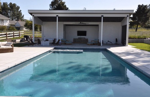 House in San Luis Obispo with pool. Located 10 minutes from downtown SLO, 15 minutes to the beach, 15 minutes from Cal Poly, and in the heart of Edna Valley wine country. Our property boasts a large pool and hot tub, great mountain views, and comfortable outdoor living. Have a night around the fire pit, play a game of air hockey, or enjoy the outdoor 75" T.V. There is truly something for everyone at this location.
