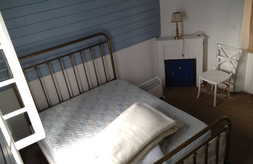 One bedroom and bathroom is located in a small and terraced house overlooking the small garden with hydrangeas.