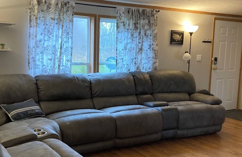 Large above ground pool, private lake (no motorized boats) paddle boat and paddle board. Sleeping for 6 in the main house and up to 12 with reservations of 7 or more. Beautiful sun room with a wall of windows. 3.6 acres. Deck, grill, and fire pit.