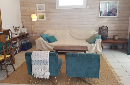 Original house, with two verandas, renovated, comfortable, quiet, very clear, garden, parking. Two bedrooms, one on each floor, with its own bathroom and toilet. One with 160 bed. The other: futon 160 + extra bed. Possibility to have guests: sofa bed in the living room (two places). Ideal for holidays with family or friends. All trips on foot: 5 minutes from shops, 8 minutes from the train station, 15 minutes from the city center and Plat-Gousset beach. Sea view. Garden and very quiet neighborhood.