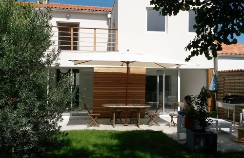 (Text automatically translated) House with a garden Angoulins-sur-Mer near Chatelaillon and La Rochelle. Small beach nearby (300m) overlooking the Ile d'Oleron, Ile d'Aix and Fort Boyard and sandy beach at 2km. House located 2 minutes walk from the town center (shops: bakery, deli catering, banking, tobacco bar, restaurant, coop, pharmacy) and near the mall. Very comfortable, spacious, fully furnished and equipped, 4 people (possibility 6 people) terrace under arbor, shaded garden, garden furniture, BBQ. Ground floor: entrance, living room - dining room, kitchen with center island (the whole garden view) and Hi TV, internet connection kitchen. pantry. Floor: 1 desk, 1 bedroom garden view with bed 160, 1 children's room with a cot and a sofa bed 160, 1 children's room with baby bed and a sofa bed 160. Possibility of cleaning