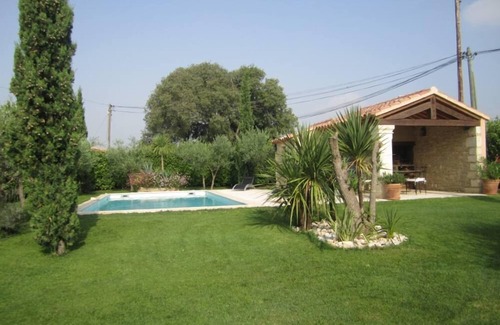 (Text automatically translated) New house, all comfort (large bathroom with shower and bath), garden planted with trees, in a quiet and peaceful setting. Summer kitchen in a small stone Mazet. All shops within 5 minutes by car. The Pont du Gard and Uzes, with its Provencal market on Saturday, its castle and its pedestrian streets. The Uzes, olive groves and old stone villages. Avignon, the Papal Palace and its theater festival. The gourmet. Anduze, pottery and bamboo. The Cevennes tourist train. The Camargue: the Alpilles and Baux-de-Provence, Arles Roman city and its museums. The port of Grau du Roi, the Grande Motte and Aigues-Mortes.