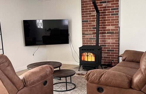Visit with family & friends or work remotely in this fully furnished home w/ fenced yard. Spread out in two living rooms or enjoy grilling out on the back patio or relaxing on the front porch watching the town go by. Relax in the soaking tub or cuddle up with loved ones by the wood pellet stove or fire pit.