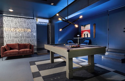 5 minutes from SAT & close to all major attractions in San Antonio! Your extended family and friends will enjoy this massive house w/a gorgeous pool, beach chairs, & umbrellas, a cozy fire pit, a massive pergola, a playground, outdoor games, and an IG-worthy mural. Relax in the vibe-y game room w/pool table, shuffle board, arcade games, and a photo-op backdrop. Have coffee at the generously stocked coffee bar with a Keurig. WFH guests will love high speed internet & a quiet work space.
