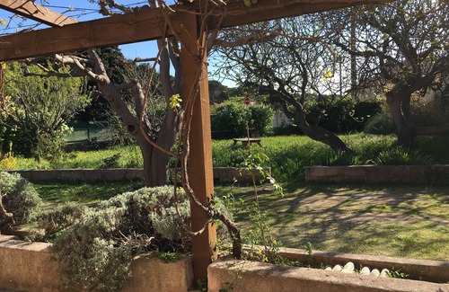 Charm of the shady terrace in front of the closed garden for a game of petanque