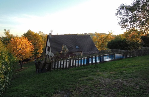 In a wooded setting, house of 150 sqm fully equipped with the quiet of the countryside and the proximity of the city. From Ussac (village with shops: Carrefour - tobacco / press - pharmacy), close to Brive-la-Gaillarde (5 minutes by car), you can visit the surrounding sites (Collonges la Rouge, Turenne, Rocamadour, the Valley of the Dordogne, Sarlat, Lascaux, the Gouffre de Padirac, ...) enjoy the gastronomy, the bustling market of Brive, the adventure trails of the Wizz'titi Parc (Ussac), or relax around the pool and on the terrace by beautiful summer evenings. The rental has 3 bedrooms (sleeps 6 with 2 doubles and 2 singles) + 1 sofa bed in extra in the office if necessary, a bathroom with tub and a bathroom with shower. fenced. Wifi, Canal +, board games available.