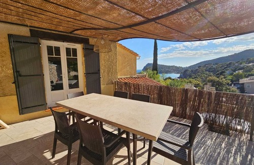 House with sea view for 4/6 people, 10 minutes walk from the beach is located in Rayol-Canadel-sur-Mer. House with sea view for 4/6 people, 10 minutes walk from the beach provides accommodation, featuring Balcony/Terrace, Fireplace/Heating, Child Friendly, among other amenities. This House features Balcony/Terrace, Fireplace/Heating, Child Friendly, to make your stay a comfortable one.