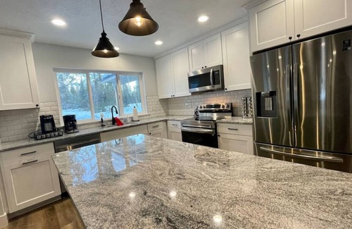 Year-round you can visit the nearby Gold Fork Hot Springs, explore the wooded surroundings (the front of the property boarders some beautiful state land), bike, hike or just relax in this luxurious cabin and enjoy the pool table, ping pong table, games, watch a movie or whip up something delicious in the gourmet kitchen.