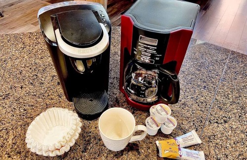 Fully equipped with stainless steel appliances, cooking basics, spices, drip coffee maker, K-cup coffee maker, dishware & flatware, microwave, blender and toaster