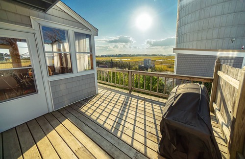 A few minutes walk to the beach, salisbury center and boardwalk. This is a large 3 bedroom, sleeps up to 12 guests. Full kitchen, washer/dryer in unit, 2 full bathrooms 1 half. Unit includes TVs & Internet. 3rd floor open living area w/ 1 queen bed 1 sofa bed and games for entertainment. Propane grill & back porch w/outdoor seating. Linens and towels provided. Two off-street parking spot provided. Enjoy sunrise and sunset views from one of our 6 decks!
