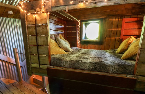 This three-storey abode features a kitchen/diner with combi oven/microwave with two-ring hob, fridge/freezer, kettle, toaster and dining area, along with a sitting area with electric woodburner. There is a king-size bedroom serviced by a shower room and cloakroom. To the outside is a decking with furniture, outdoor bath and a shared hot tub and car park. Within 0.6 miles there is a shop and pub and please note this is a non-smoking and pet free accommodation. Fuel, power, bed linen and towels are all included in the price. Choose Humble Bee for a unique stay in Devon. Note: Remove shoes in Humble Bee and bring slippers or soft indoors shoes to wear inside. Note: Split over three floors with a twisting staircase, not suitable for those with limited mobility. Note: May be associated noise from local car park. Note: Please bring torches, walking boots and swim wear for the outdoor bath. Note: There is no WiFi but there is mobile phone signal. Note: Decking may be slippery when wet.